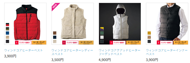 Amazonをはじめとしたネットショップには、たくさんの種類の電熱ベストが売られています。