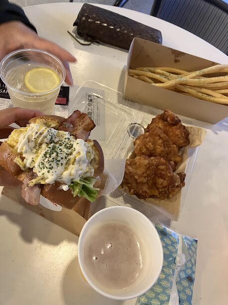 ワンドリンクを片手に、その中から3つほど食べたいものをチョイスし、空いていたテーブルでいただきました。どれも美味しく、様々なメニューを楽しめるのはキッチンカーの魅力です。