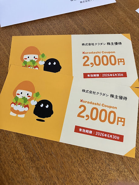 こちらは、クラダシという会社の株主優待です。